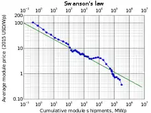 |CitationClass=تم تجاهله (مساعدة); تحقق من التاريخ في:|تاريخ الوصول=(مساعدة) - "Swanson's Law and Making US Solar Scale Like Germany". Greentech Media. 24 November 2014. مؤرشف من الأصل في 19 مايو 2019. الوسيط