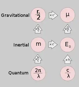 - طول موجة كومبتون (λ) يمثل الاستجابة الكمية للكتلة للهندسة المحلية (المكانية).