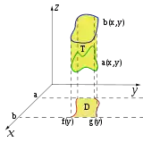إذا كان D مجال مقيس عمودي على محور y وهي دالة مستمرة؛ فإن(α(y و(β(y (بالتعريف في الفترة [a, b]) هما دالتين اللتين تحددان D. إذن: