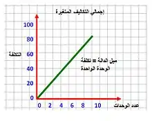 يشير ميل دالة التكاليف المتغيرة إلى التكاليف المتغيرة للوحدة، ويحدد إجمالي التكاليف المتغيرة بضرب عدد الوحدات في تكلفة الوحدة، تبقى التكلفة المتغيرة للوحدة ثابتة عند جميع مستويات النشاط بينما يتغير مجموع التكلفة المتغيرة باختلاف مستوى النشاط.