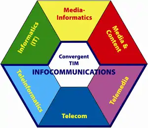 يتم استخدام مصطلح الاتصالات المعلوماتية Infocommunications أحيانا بالتبادل مع تكنولوجيا المعلومات والاتصالات. في الاتصالات المعلوماتية الواقع هو التوسع في الاتصالات السلكية واللاسلكية مع معالجة المعلومات ووظائف معالجة المحتوى على أساس تكنولوجيا رقمية مشتركة. للمقارنة بين هذه المصطلحات وغيرها، انظر. .[5]