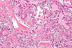 ![]() صورة مجهرية لسرطان الغدة الدرقية اللبيّ والذي قد يظهر في MEN 2A و MEN 2B. صبغة الهيماتوكسيلين واليوزين صورة مجهرية لسرطان الغدة الدرقية اللبيّ والذي قد يظهر في MEN 2A و MEN 2B. صبغة الهيماتوكسيلين واليوزين | |