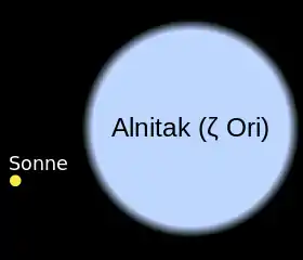 مقارنة بين حجم عملاق أزرق متوسط مثل النطاق وحجم الشمس.