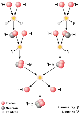 وسرعان ما تزداد عملية اندماج الهيدروجين (تفاعل بروتون-بروتون المتسلسل) مكونة غاز الهيليوم مع حرارة وضوء ناتجة من مخلفات التفاعل، وتتوجه الطاقة الناتجة من التفاعلات النووية نحو سطح النجم ليشع بنوره معلنا ولادة نجم جديد.