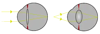 ومن الطبيعي ان يترافق بواسطة تقارب في العينين لإبقائها موجهة عند نفس النقطة، أحيانا يطلق عليه اصطلاح التلاقي اللا ارادي لتكيف العين.[2]