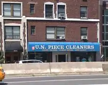 تستخدم العديد من الشركات فن التلاعب بالكلمات لمصلحتها من خلال جعل أسماء أعمالها أكثر تميزًا. يقع هذا المحل بالقرب من مقر الأمم المتحدة ويلعب على مصطلح قوات حفظ السلام "UN Peacekeepers".