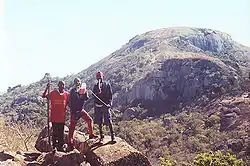 Cecil Rhodes, ليندر ستار جيمسون, and several other leading early white settlers, including Allan Wilson and all the members of the دورية شانغاني killed in the حرب ماتابيلي الأولى, are buried on the summit of Malindidzimu, the 'hill of the spirits' -- this is a great source of controversy in modern Zimbabwe as this is considered a sacred place by nationalists and indigenous groups.[25][26] This mount is also referred to as the World’s View. (Not to be confused with the World's View, Nyanga).