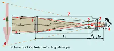 أو على مسافة منها أقل من بعدها البؤرى فتكون صورة تخيلية مكبرة لهذه الصورة يمكن رؤيتها. ويرجع هذا التصميم إلي إسحق نيوتن ولذلك يقال أن له بؤرة نيوتن.