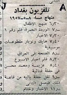 تلفزيون دولة العراق يعدّ أول بث تلفازي عربي[1]، بدأ إرساله الأول في صيف عام 1957.