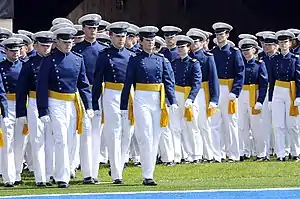 طلاب أكاديمية القوات الجوية الأمريكية يسيرون عند التخرج.