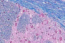 صورة مجهرية للجسر باستخدام صبغة الهيماتوكسيلين والأيوزين وتلوين أزرق صامد للوكسول