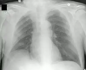 ![]() ذات الرئة السفلي الأيمن: يُؤدي التليف الكيسي المُزمن إلى تدمير النسيج البرانشيمي للرئة، مُسببًا في النهاية موت المريض نتيجة لتليف الجهاز التنفسي. ذات الرئة السفلي الأيمن: يُؤدي التليف الكيسي المُزمن إلى تدمير النسيج البرانشيمي للرئة، مُسببًا في النهاية موت المريض نتيجة لتليف الجهاز التنفسي. | |