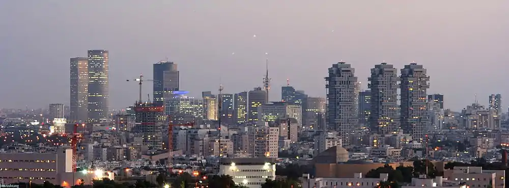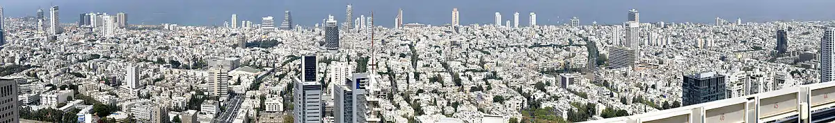 تل أبيب (بالعبرية: תל אביב-יפו) مدينة إسرائيلية، تقع على ساحل البحر الأبيض المتوسط، وتعد الآن (بعد تقسيم فلسطين) ثاني أكبر مدينة إسرائيلية من حيث عدد السكان والمساحة في تجمع جوش دَن الحضري، يسكنها حوالي 3.3 مليون شخص ابتدأ من 2010.[7] المدينة تدار من قبل أمانة تل أبيب - يافا، عمدتها الحالي هو رون حولداي. وتوجد بها جميع سفارات الدول الأجنبية التي تقيم علاقات ديبلوماسية مع إسرائيل.[8]