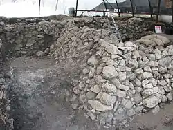 - المنطقة ب - تقع في الجزء الشمالي من التل، وقد تم الحفرعلى مساحة كبيرة وفيه آثارات تعود إلى العصر البرونزي الأوسط . من المحتمل أن يكون هذا الموقع هو لمدينة كنعانية كبيرة وتم العثور على بقايا تحصينها: جدار ضخم وبرج مائل.