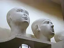 رأسي قبور منحوتة على رف بجانب بعضهم في المتحف المصري بالقاهرة.