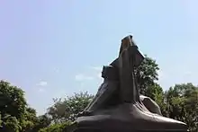يمثل التمثال فتاة مصرية تقف بجانب تمثال أبي الهول وتضع يدها على رأسه وهي رمز لمصر وهي تنظر إلى المستقبل.