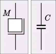 الكمية الميكانيكية التي يتم تمثيلها بـ"السعة" هي الكتلة، وعلى ذلك يمكن تمثيل المكثف في المجال الكهربي بالمكثف. تخضع السعة الكهربية للمعادلة: