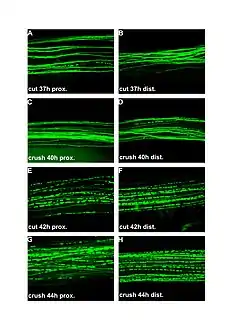 |CitationClass=تم تجاهله (مساعدة) - "Nerve injury, axonal degeneration and neural regeneration: basic insights". Brain Pathology. 9 (2): 313–25. April 1999. doi:10.1111/j.1750-3639.1999.tb00229.x. PMID 10219748. الوسيط
