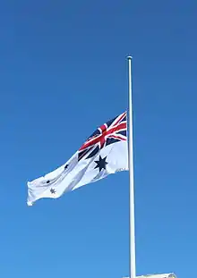- "What is the proper procedure to fly your flag at half-staff?". American Flag & Pole Co. مؤرشف من الأصل في 01 ديسمبر 2017. اطلع عليه بتاريخ 29 مايو 2017. الوسيط