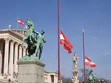 - "Flags at half mast". مؤرشف من الأصل في 21 أغسطس 2018. الوسيط