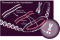 التهجين الموضعي المتألق (بالإنجليزية: Fluorescent in situ hybridization) هو تقنية خلوية تعتمد فكرة التهجين الموضعي للتحري عن وجود تسلسلات دنوية معينة بغية تشخيص المرض أو متابعة العلاج.[1][2][3] يتم استخدام مسبار يحتوي على صبغات متألقة يتم رأيتها باستخدام مجهر متألق في حالة وجود التسلسل الدنوي المطلوب. من بعض الأمراض التي يتم تشخيصها بهذه الطريقة متلازمة داون وأبيضاض الدم.