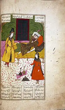 مخطوطة من الشاهنامة تصور تهمينة وهي تزور رستم