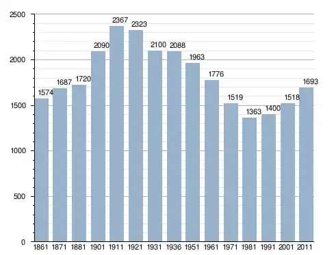 في سنة 1861 بلغ عدد السكان 1٬574 نسمة، وتطور العدد ليصل في سنة 2011 لـ 1٬693 نسمة.