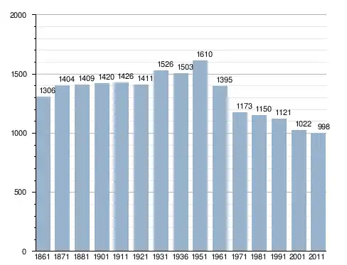 في سنة 1861 بلغ عدد السكان 1٬306 نسمة، وتطور العدد ليصل في سنة 2011 لـ 998 نسمة.