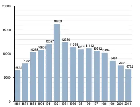 في سنة 1861 بلغ عدد السكان 6٬532 نسمة، وتطور العدد ليصل في سنة 2011 لـ 6٬732 نسمة.