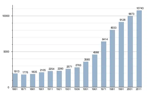 في سنة 1861 بلغ عدد السكان 1٬913 نسمة، وتطور العدد ليصل في سنة 2011 لـ 10٬743 نسمة.