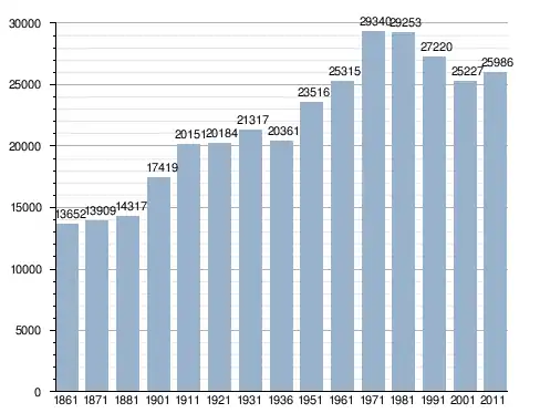 في سنة 1861 بلغ عدد السكان 13٬652 نسمة، وتطور العدد ليصل في سنة 2011 لـ 25٬986 نسمة.