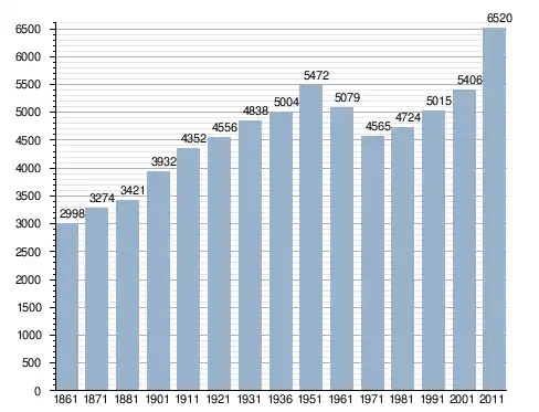 في سنة 1861 بلغ عدد السكان 2٬998 نسمة، وتطور العدد ليصل في سنة 2011 لـ 6٬520 نسمة.