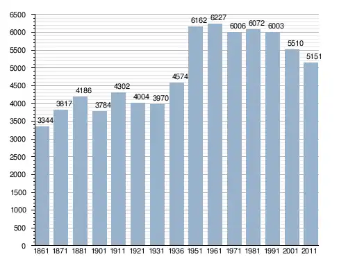 في سنة 1861 بلغ عدد السكان 3٬344 نسمة، وتطور العدد ليصل في سنة 2011 لـ 5٬151 نسمة.