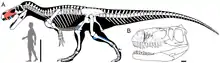 اعادة انشاء الهيكل العظمي تظهر حجم الـ T. gurneyi مع إبراز الأجزاء المعروفة