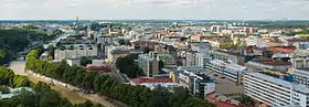 تنقسم المدينة إلى 78 تقسيم وتسعة دوائر لا تعمل كوحدات حكم محلي. مع ذلك، فإن هناك بعض المشاريع تعتمد على تقسيمات الأحياء، ولا سيما في الجزء الشرقي من المدينة حيث تنتشر البطالة في بعض المناطق. أكبر الأحياء سكاناً فاريسوو ورونوسماكي. بينما حسب المساحة كاكسكرتا وبآتينن المشكلان من بلديات سابقة دًمجت بالمدينة في منتصف القرن العشرين، ليكونا أكبر الأحياء.