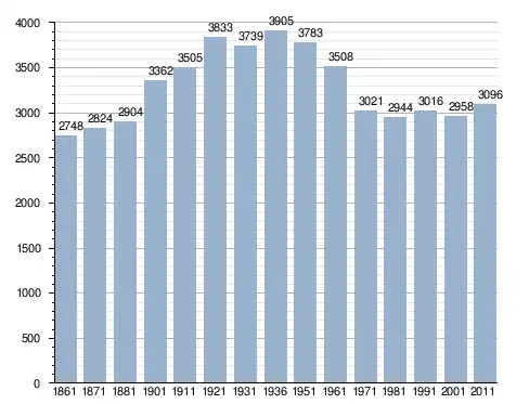 في سنة 1861 بلغ عدد السكان 2٬748 نسمة، وتطور العدد ليصل في سنة 2011 لـ 3٬096 نسمة.
