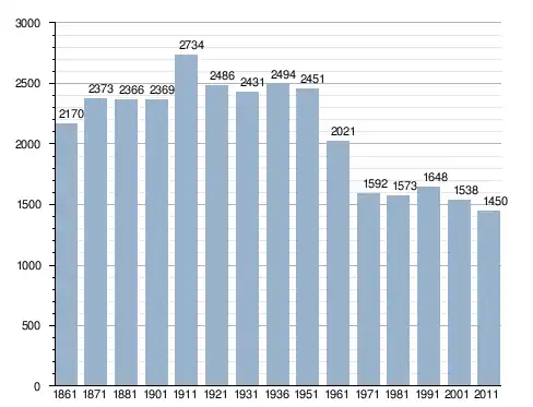 في سنة 1861 بلغ عدد السكان 2٬170 نسمة، وتطور العدد ليصل في سنة 2011 لـ 1٬450 نسمة.