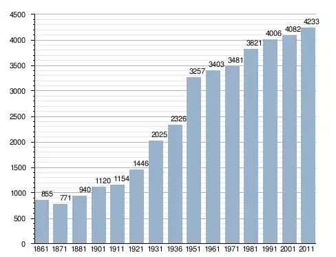 في سنة 1861 بلغ عدد السكان 855 نسمة، وتطور العدد ليصل في سنة 2011 لـ 4٬233 نسمة.
