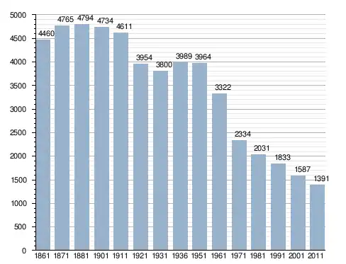 في سنة 1861 بلغ عدد السكان 4٬460 نسمة، وتطور العدد ليصل في سنة 2011 لـ 1٬391 نسمة.
