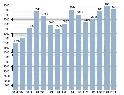 في سنة 1861 بلغ عدد السكان 4٬988 نسمة، وتطور العدد ليصل في سنة 2011 لـ 8٬551 نسمة.