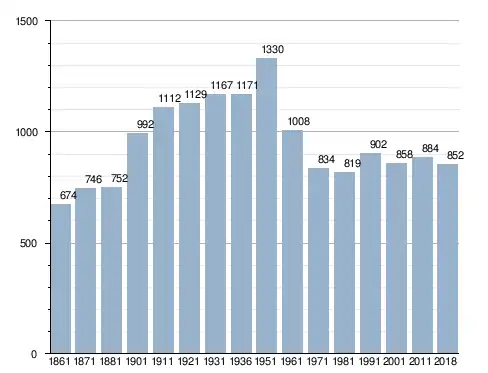 في سنة 1861 بلغ عدد السكان 674 نسمة، وتطور العدد ليصل في سنة 2018 لـ 852 نسمة.