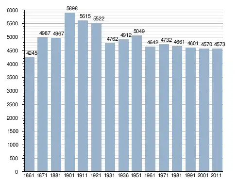 في سنة 1861 بلغ عدد السكان 4٬245 نسمة، وتطور العدد ليصل في سنة 2011 لـ 4٬573 نسمة.