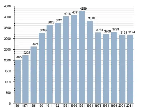 في سنة 1861 بلغ عدد السكان 2٬027 نسمة، وتطور العدد ليصل في سنة 2011 لـ 3٬174 نسمة.