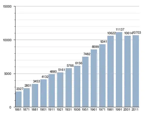 في سنة 1861 بلغ عدد السكان 2٬327 نسمة، وتطور العدد ليصل في سنة 2011 لـ 10٬703 نسمة.
