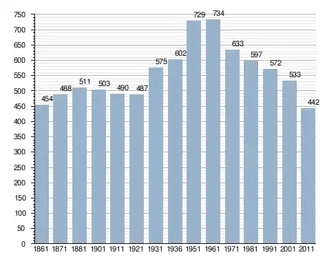 في سنة 1861 بلغ عدد السكان 454 نسمة، وتطور العدد ليصل في سنة 2011 لـ 442 نسمة.