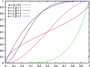 دالة الكثافة الاحتمالية الخاصة بتوزيع بيتا تعطى بالشكل التالي: