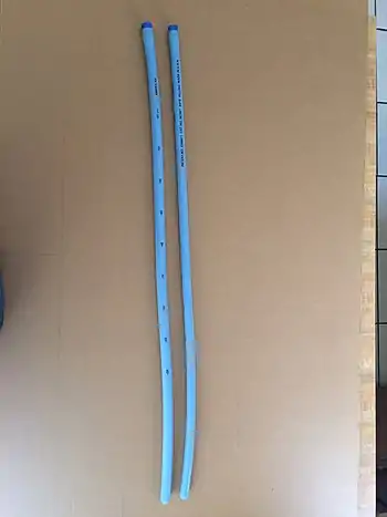 - مُوسِّع على سلك توجيه، [5] تستخدم تلك المُوسِّعات في التنظير الهضمي العلوي أو التَنْظيرٌ التَأَلُّقِيّ (بالفلور). [6] عادة ما يتم إجراء التنظير أولاً لتقييم الوضع التشريحي، فيتم إمرار سلك التوجيه عبر الجزء الضيق من المرئ حتي يصل إلى المعدة. ويمكن أن يتم ذلك أيضا باستخدام المنظار الفلوري (بالإنجليزية: fluoroscopically). يتم إدخال المُوسِّعات مرة أخرى ولكن هذه المرة من خلال مرورها على سلك التوجيه ويتم زيادة أحجام المُوسِّعات بالتتابع والتدريج، بإدخال مُوسِّع أكبر فأكبر. [7]