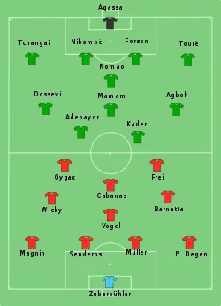| 9 | Thomas Dossèvi | نادي فالينسيان | 06.03.1979 | 2 | 0 | 0 | 0 | 0 |