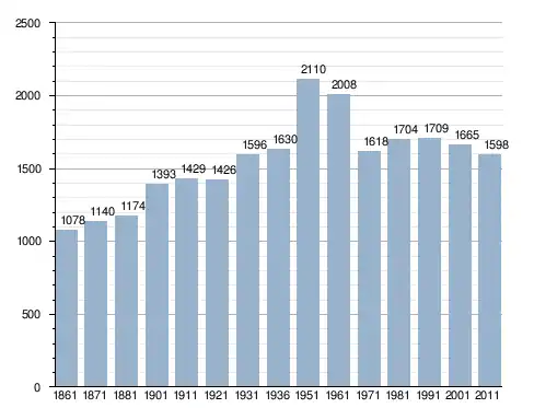 في سنة 1861 بلغ عدد السكان 1٬078 نسمة، وتطور العدد ليصل في سنة 2011 لـ 1٬598 نسمة.