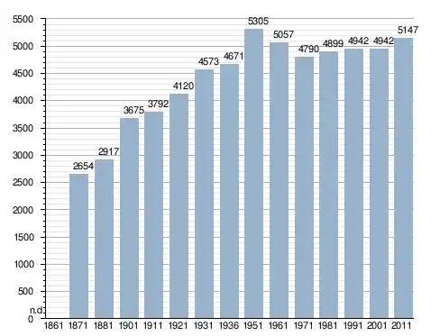 في سنة 1871 بلغ عدد السكان 2٬654 نسمة، وتطور العدد ليصل في سنة 2011 لـ 5٬147 نسمة.